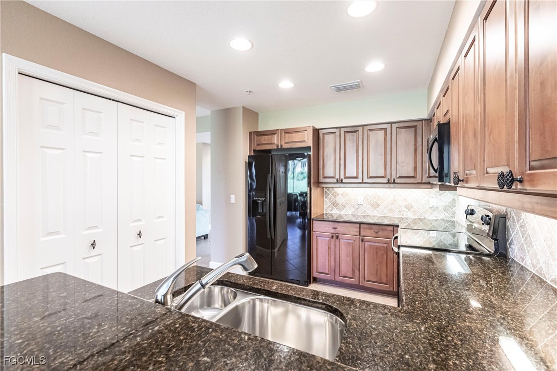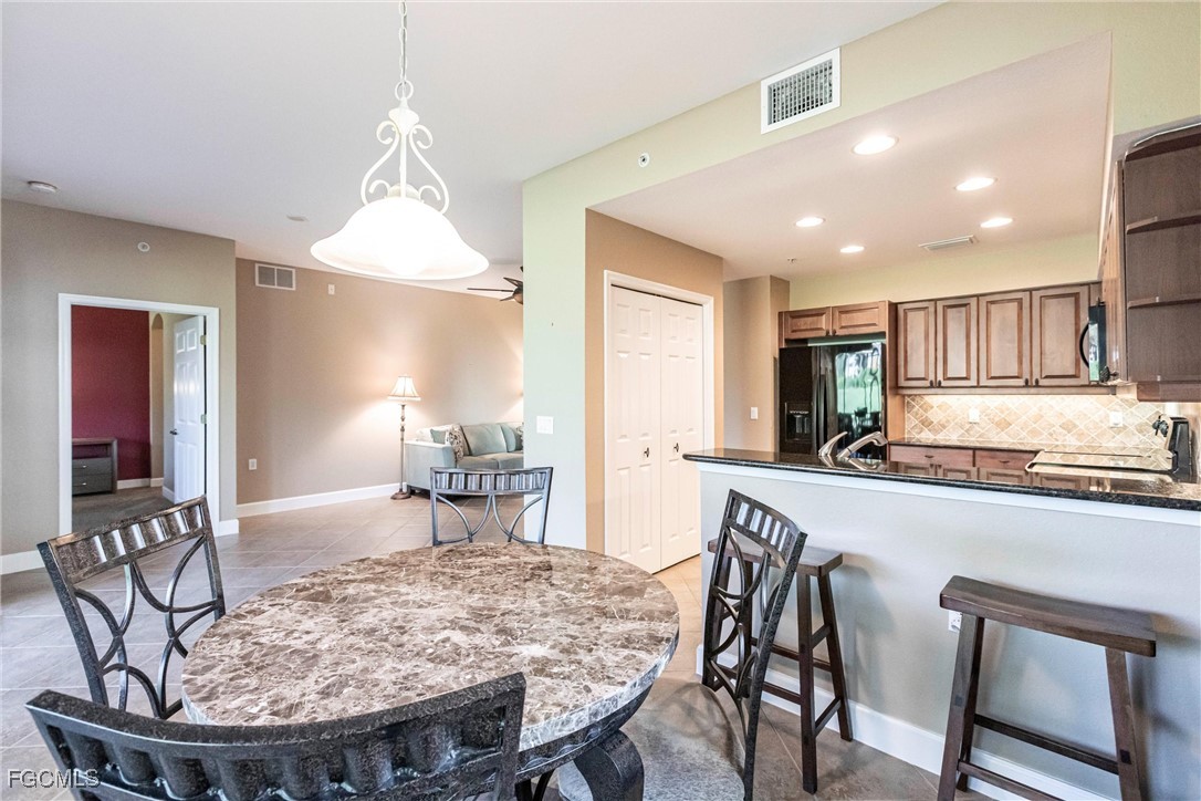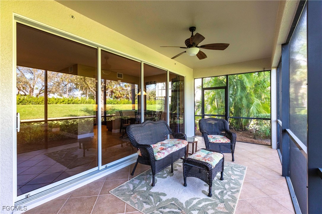 BEST DEAL IN VERANDAH. SELLERS MOTIVATED BRINGS OFFERS. This First-floor coach home is being sold at an unbelievable price in the highly desirable Pebblebrook neighborhood located in the gated Verandah community. This 3-bedroom, 2-bath, 2-car garage home boasts 1532 sq. ft. of living space with a very private and quiet setting from your screened-in Lanai. This home presents a perfect opportunity to make this coach home your own and enjoy the lifestyle that Southwest Florida living offers. Upon entering the foyer, you are greeted with a glass insert at the front door that leads you into an open family room adjacent to the kitchen and all of the bedrooms. Diagonal tile throughout the main living area adds a nice touch. The kitchen features a spacious pantry, granite countertops, an attractive backsplash, and plenty of cabinet space. The adjacent breakfast nook offers a lovely view of the preserve area and provides ample natural sunlight. The primary bedroom suite is spacious and has access to the lanai through sliders, with recessed lighting and a fan. The large closet includes a closet organizer for better space utilization. The primary bathroom offers a large walk-in shower, separate tub, dual sinks, and a vanity space. Both remaining guest bedrooms are generously sized with ample closets, one of them featuring another closet organizer and a small built-in desk. Completing the home is a 2-car garage with a rack for additional storage and a tiled lanai space. A Home Tech WARRANTY can be transferred to the new owner. Pebblebrook residents have access to a heated community pool/spa, fitness area with equipment, and a community clubhouse for social gatherings at no extra cost. Additionally, as a member of the Verandah club, residents have access to a full array of amenities including 2 Championship Golf courses designed by Jack Nicklaus and Bob Cupp, a state-of-the-art fitness center, a resort-style heated pool, tennis, pickleball, bocce, kayaks, 9 miles of walking and jogging paths, a dog park, playground, multiple restaurants, and an active social calendar to satisfy everyone's interests. Don't delay, secure this home at this below-market price and make it your place in Paradise.