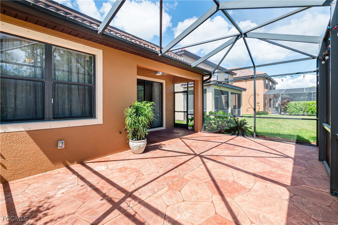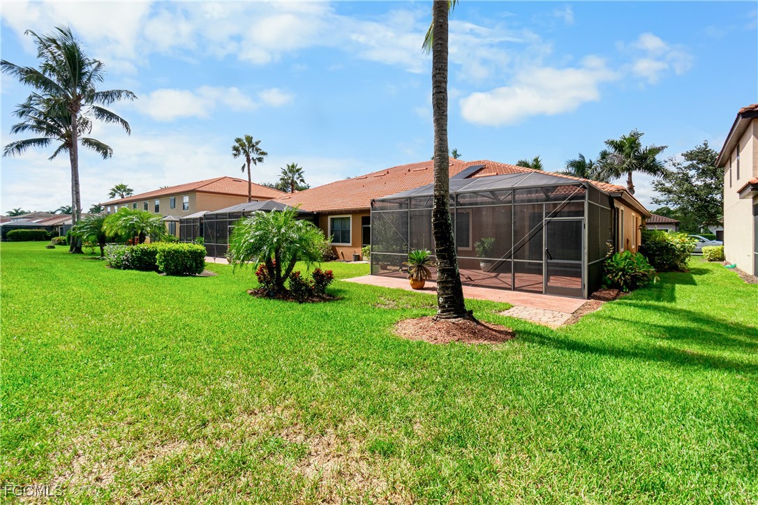 Welcome to Reflection Isles, where comfort meets convenience in this beautiful one-story townhouse. This home stands out with a number of features rarely found: an expanded driveway for extra parking, a spacious extended lanai perfect for entertaining, NEW exterior paint, no carpet, and a COMPLETE SOLAR SYSTEM POWERING THE ENTIRE HOME—delivering efficiency, significant savings on energy costs and no power outages! Inside, you’ll enjoy peace of mind with a newer A/C system. Step outside to a large backyard offering plenty of space for a pool, play area, or a fence for added privacy—an uncommon luxury for townhouse living. The home also features fiber optic wiring already installed, you'll never have to worry about interruptions to your cable or Wi-Fi service, included in the HOA. The amenity center offers basketball and tennis courts, a community pool & spa, a clubhouse, fitness center, & tot lot. But perhaps the best part of this community is the social committee, which is always planning fun events for residents of all ages. With its prime location near shopping, I-75, & the airport, you'll have everything you need at your fingertips. Reflection Isles provides a lifestyle as exceptional as this home. Nestled in the environmentally-sensitive Six Mile Slough, you'll experience tucked-away privacy with modern conveniences just minutes away. Schedule your showing today and experience the best of Reflection Isles living!