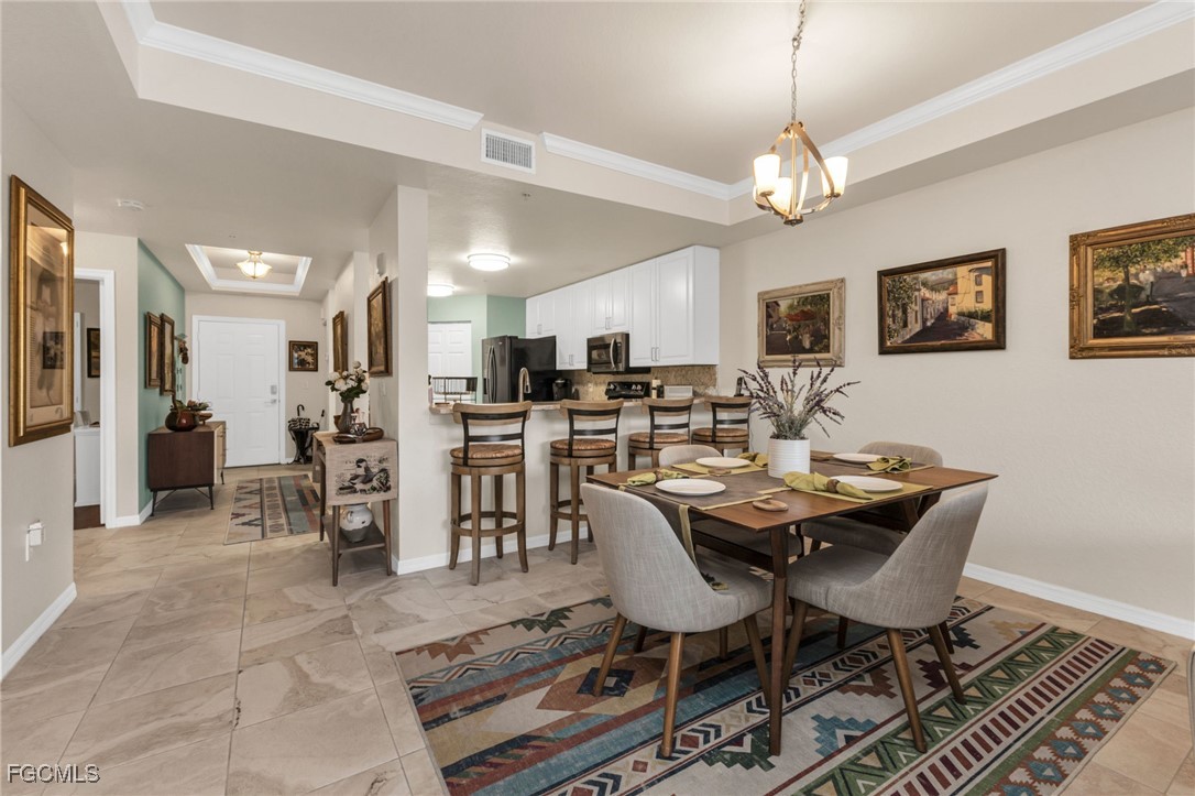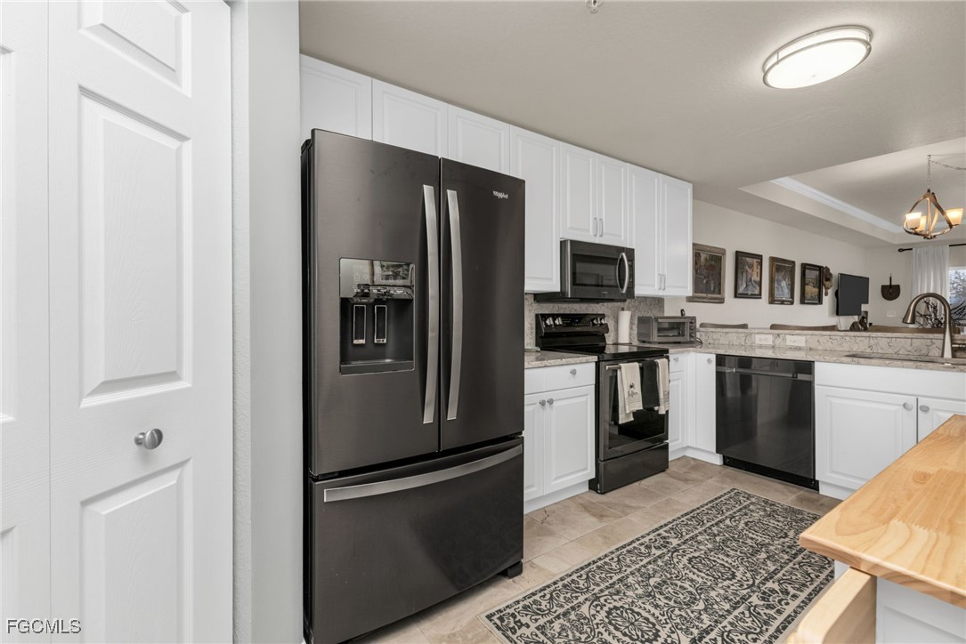 A retractable screen door welcomes a gentle breeze, while a lighted tray ceiling in the foyer leads your eye straight to the sparkling water view. The spacious kitchen features wood cabinetry, granite countertops, and stainless steel appliances, perfect for everyday living or entertaining guests. You’ll also appreciate the in-unit laundry room with a full-size washer and dryer for convenience.