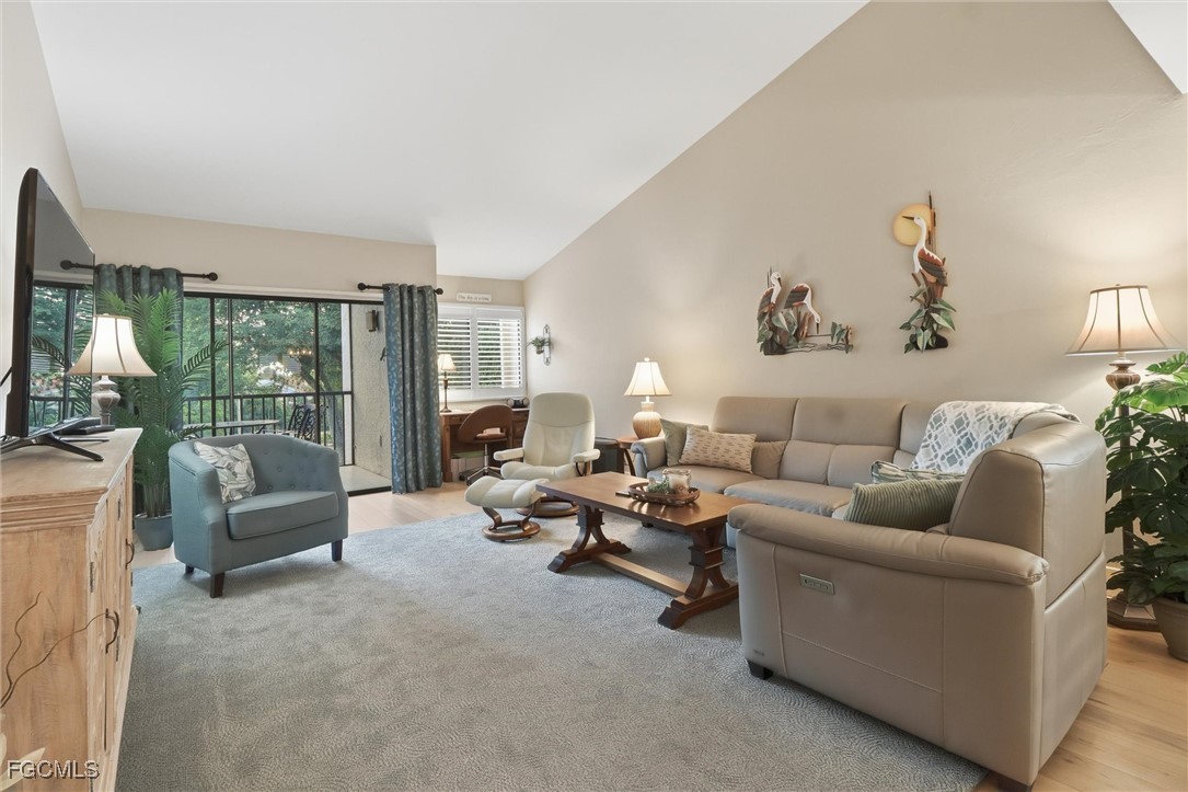 This very attractive two-bedroom top floor corner unit with elevator access offers stunning views of the lush landscape and mature trees that front Flagship. The entire property has undergone a complete facelift, featuring light engineered hardwood floors, an updated kitchen with upgraded appliances, renovated bathrooms, and a freshly painted interior. With soaring vaulted ceiling, this end unit is clean, immaculate, light and bright. Residents of Flagship Village enjoy a tranquil pool area and under-building parking. The location provides an easy walk to the clubhouse, first golf tee, and tennis courts.