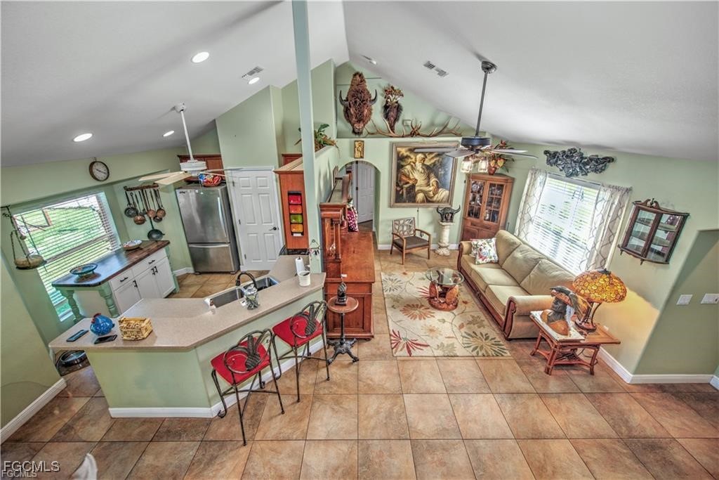 Immaculate home ready for new owner offering low maintenance living. This split floor plan has two bedrooms with bath on the first floor and an owners suite on the second floor for great privacy when enjoying visitors. The first floor's open floor plan is great for entertaining with lots of windows for light and vaulted ceilings. The master has a den and large bathroom with both shower and soaking tub. The den provides a great place for an office or additional sitting area. The master also has its own screened balcony. There was no water damage experienced from Ian. The flood insurance was paid 110125 and is assumable. The 25 year roof was installed in 2022. The house is surrounded by a beautifully landscaped fully fenced yard. Be sure to review Home Update attached list.