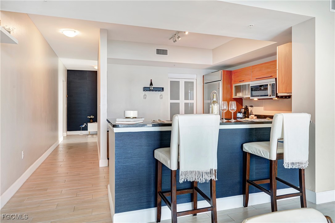 Recent Updates & Features include newly placed baseboards and fresh interior paint, all new hardware in bathrooms and kitchen, rebuilt closet doors plus a secure safe, updated kitchen pantry door and master closet shelving, decorative wood accents and modern wallpaper features, custom window shades in the main room, mini electric fireplace in the living room, painted ceilings for a crisp, finished look, updated lighting in entry, hallway, and kitchen. The AC is newly serviced for peace of mind. Lifestyle & Amenities include a resort-style pool deck (newly redesigned), tennis, pickleball, fitness center, and active social groups. Walk, bike, or hop on the trolley to Downtown Fort Myers for dining, shopping, and fun events. Whether you’re seeking an investment property or your own slice of paradise, every detail here exudes sophistication and care.
