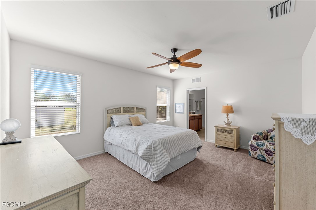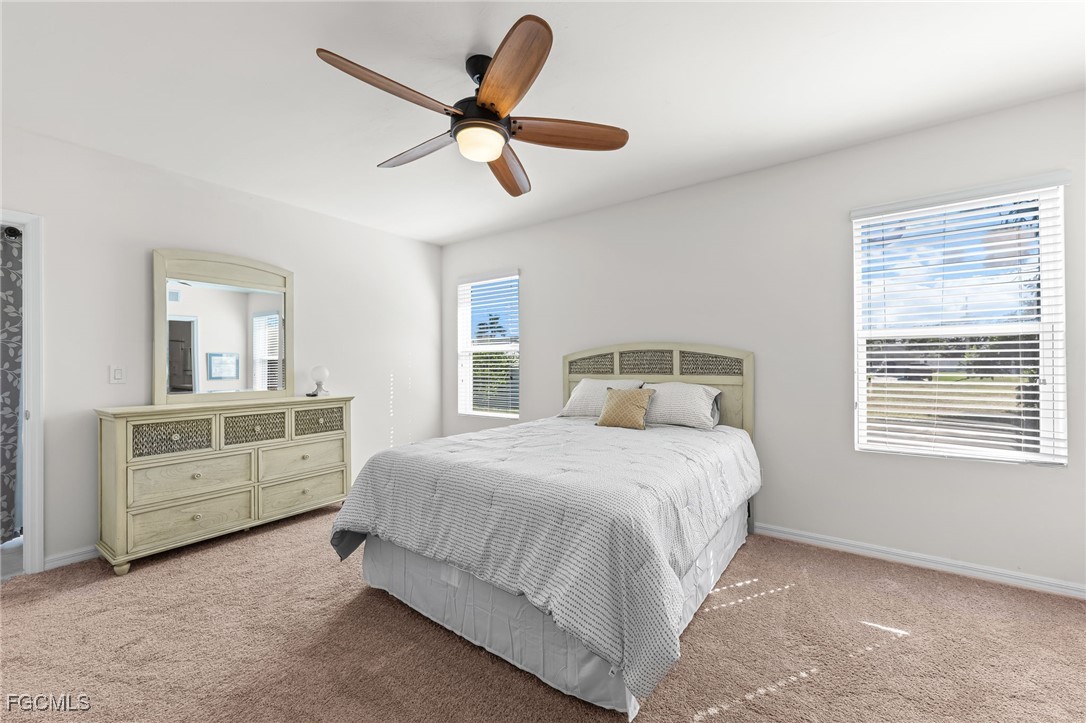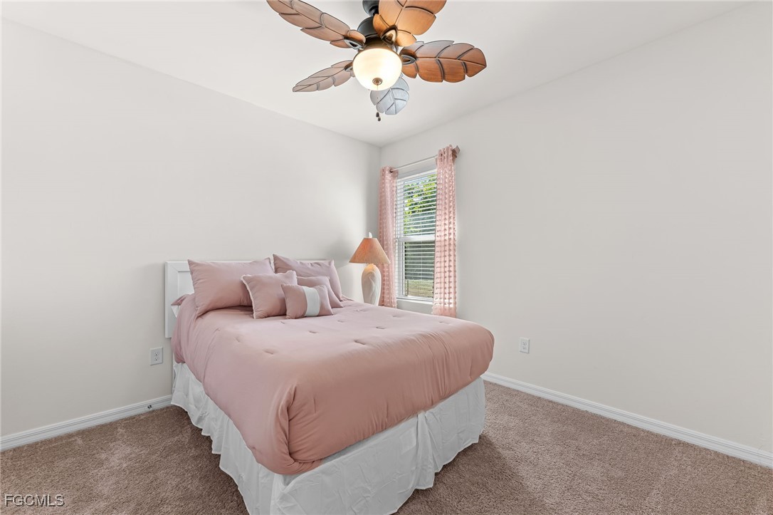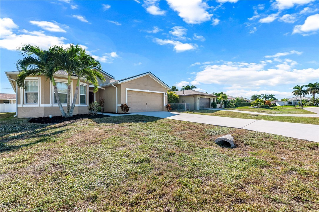 Beautiful Turnkey Home in Highly Desirable SW Cape Coral – Pelican Area! Welcome to this move-in ready 3-bedroom, 2-bath home offering over 1,700 sq. ft. of comfortable living space in one of Cape Coral’s most sought-after neighborhoods. Built in 2017, this home features modern construction and a clean, well-maintained design—ready for your updates and style preferences. The inviting great room seamlessly connects to a designated dining area and an eat-in kitchen, featuring a breakfast bar, pantry, and plenty of cabinetry—perfect for everyday living and entertaining. Step through the sliding doors to a concrete patio, with plenty of space to add a pool and create your own private outdoor retreat. The oversized primary suite offers a large walk-in closet and a spacious ensuite bath, providing a peaceful sanctuary at the end of the day. Enjoy the convenience of an indoor laundry room and peace of mind with upgraded Kevlar hurricane protection and a new roof installed 2023! Nestled in the Pelican area of SW Cape Coral, this home is surrounded by higher-end properties and just minutes from local favorites like 239 Prime, Lobster Lady, and Rum Runners at Cape Harbour Marina. Offered turnkey, this property is ready for you to move right in and add your personal touches. With its great floor plan, prime location, and modern amenities, this is an opportunity you don’t want to miss! Bedroom photo virtually staged.