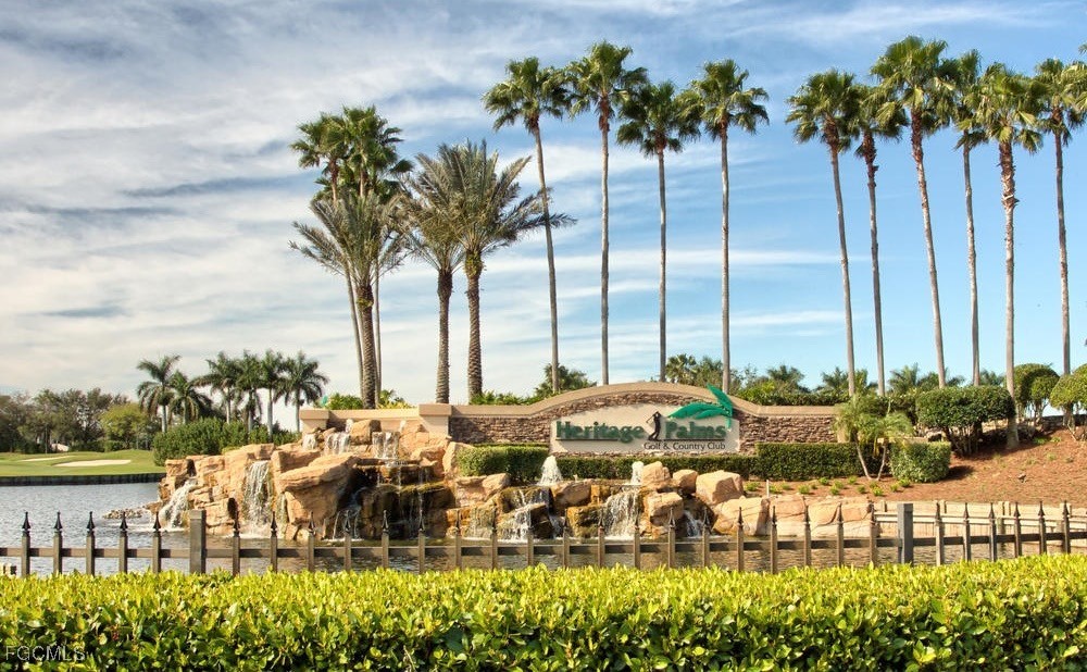 Top-Floor Veranda with Spectacular Golf & Lake Views. Relax and unwind in this top-floor Veranda with sweeping views down the 10th hole of the Royal Course—lakes and wooded areas included. The popular Dogwood floor plan offers an open layout where the kitchen overlooks the living and dining areas, creating the perfect space to entertain or simply enjoy a quiet evening at home. Both bedrooms and full baths are conveniently located at the front of the condo, providing privacy and comfort. Enjoy two lanais—sunrises from the front and sunsets from the back. A one-car detached garage offers room for your car, bikes, and grill. Just a short 7 minute walk to the neighborhood pool, clubhouse, and activity center. Built in 2005, this building features upgraded windows for added value and peace of mind. Heritage Palms is an active, resort-style community featuring two golf courses, tennis, pickleball, and two on-site restaurant venues. Ideally located in the heart of Fort Myers, just minutes from SWFL International Airport, beaches, dining, and shopping.