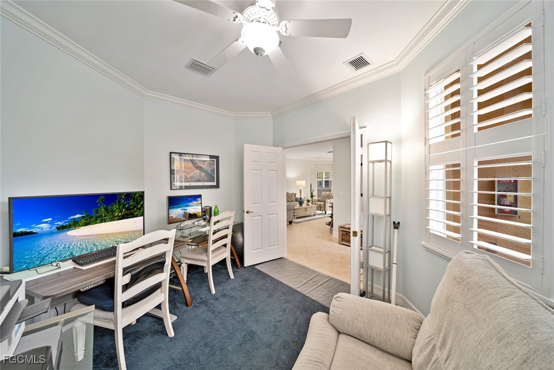 Step into this beautiful ground-floor end unit, where every detail is crafted to capture the essence of Florida living. From the moment you arrive, the home welcomes you with the ease and comfort of a residence that feels spacious, private, and unmistakably yours. Inside, a large split floor plan opens into a bright and airy great room, perfect for relaxing or entertaining. Two generously sized bedrooms, two full baths, and a versatile den that could be easily used as a third bedroom to ensure ample room for family and guests.