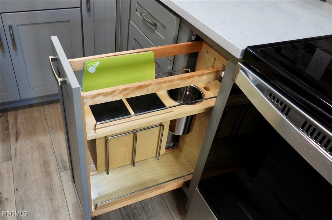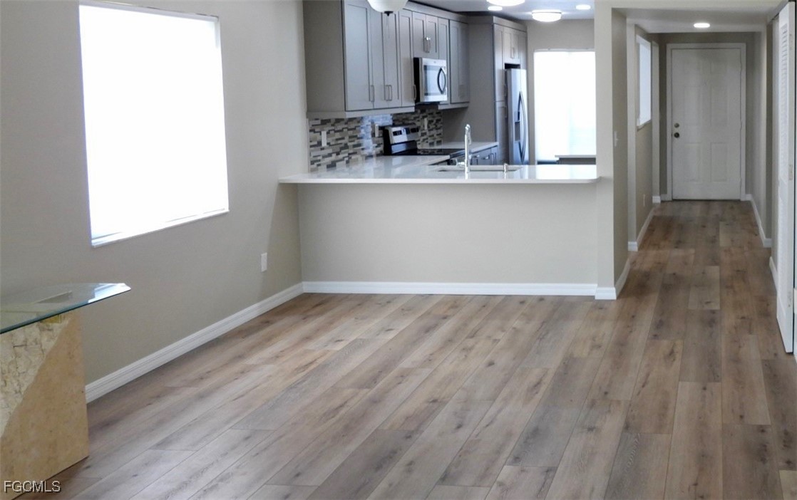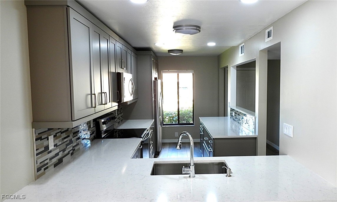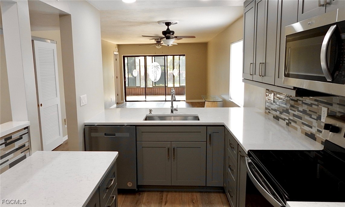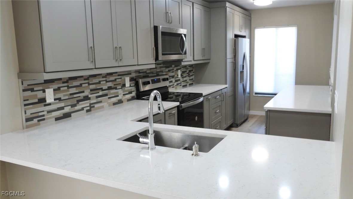 Fully renovated GROUND FLOOR END UNIT with GULF ACCESS that is ready for move-in! JUST WAIT UNTIL YOU SEE THE KITCHEN SET UP! Carefully selected bells and whistles with LARGE PANTRY, PULL-OUT SHELVES, DEEP PULL OUT DRAWERS, UTILITY and KNIFE CABINET, DEEP FARMHOUSE STYLE SINK, and plenty of counter space. The appliances are brand new and have never been used. This condo has new floors throughout, updated bathrooms, and a NEW A/C unit. Enjoy a lanai spectacular view from the lanai and just a SHORT WALK TO THE BOAT DOCKS. The location is a great walking neighborhood and you are close to shopping and I-75 and just minutes away for Downtown Fort Myers. CONVENIENT, QUIET, AND BEAUTIFUL