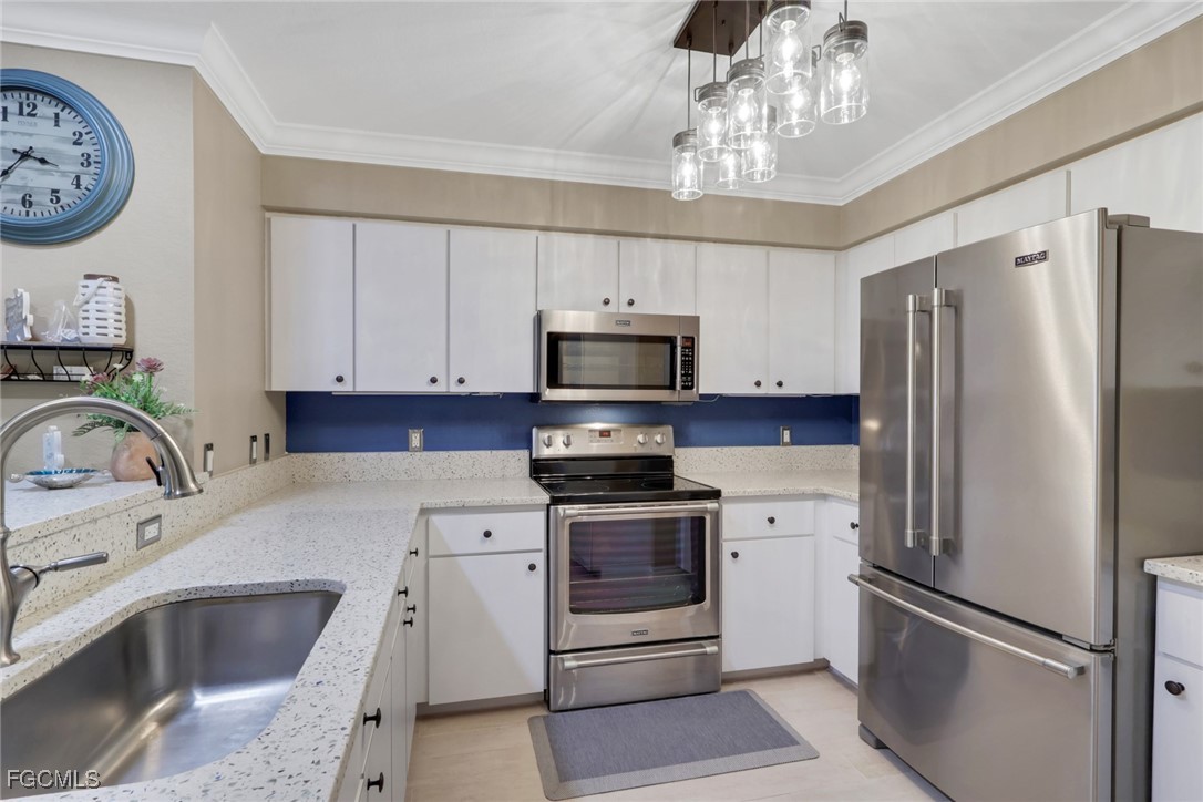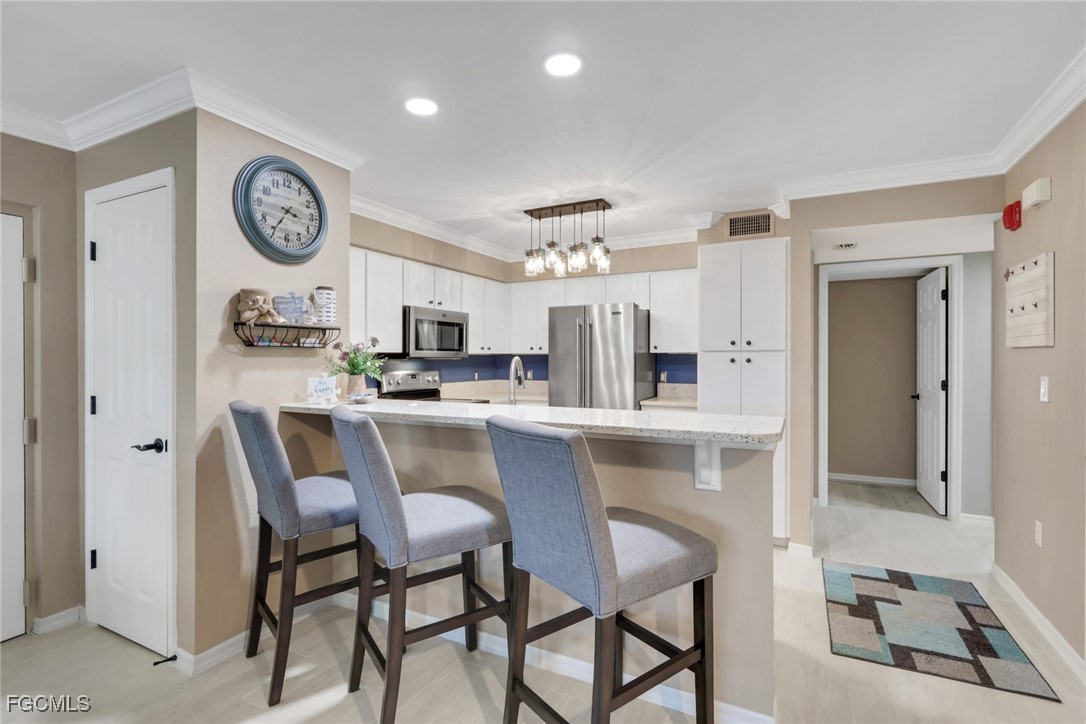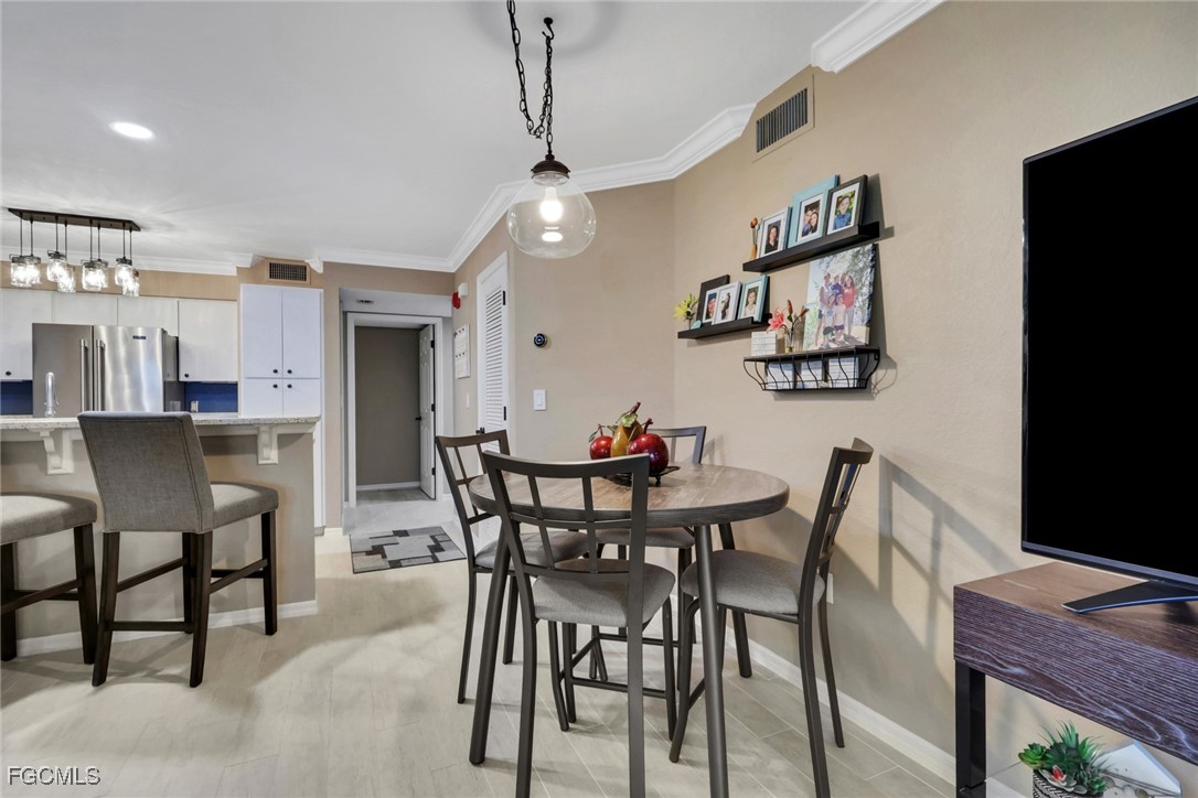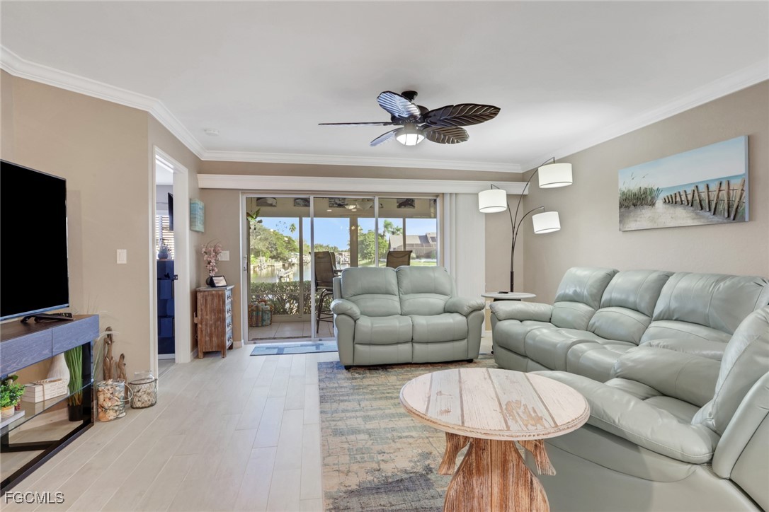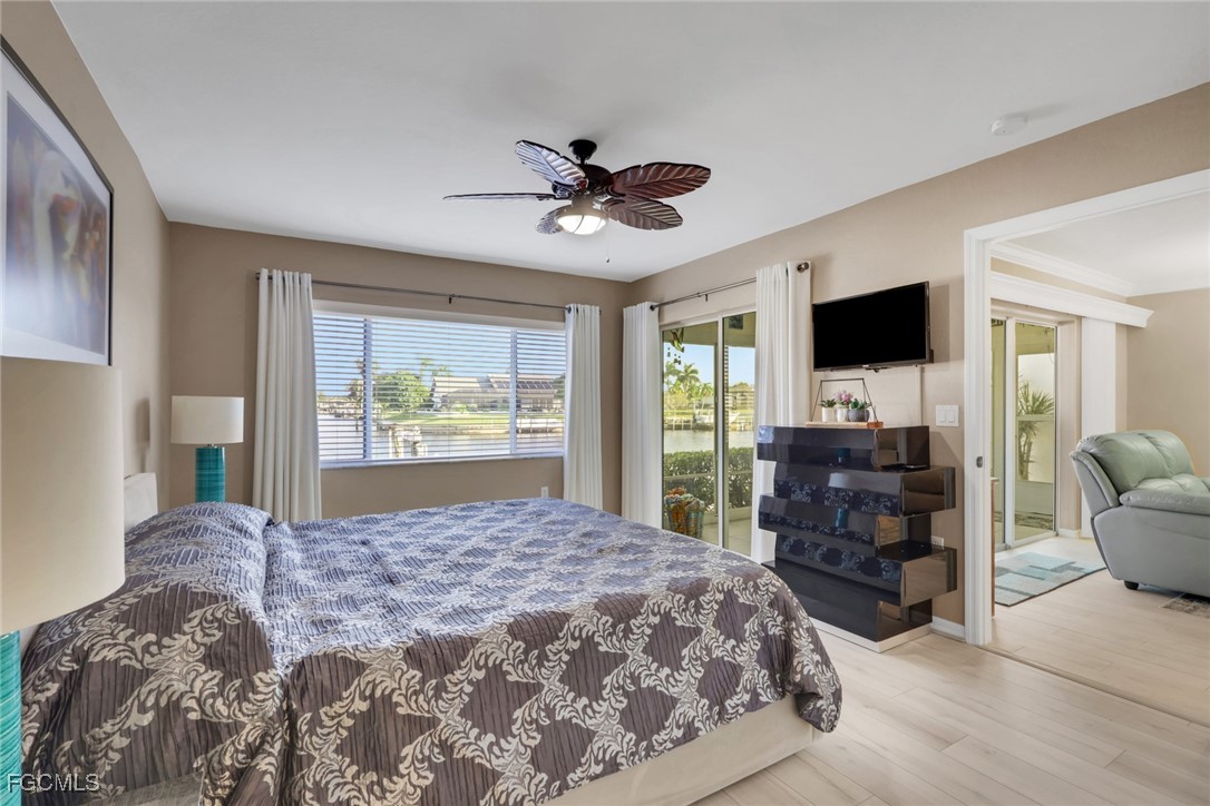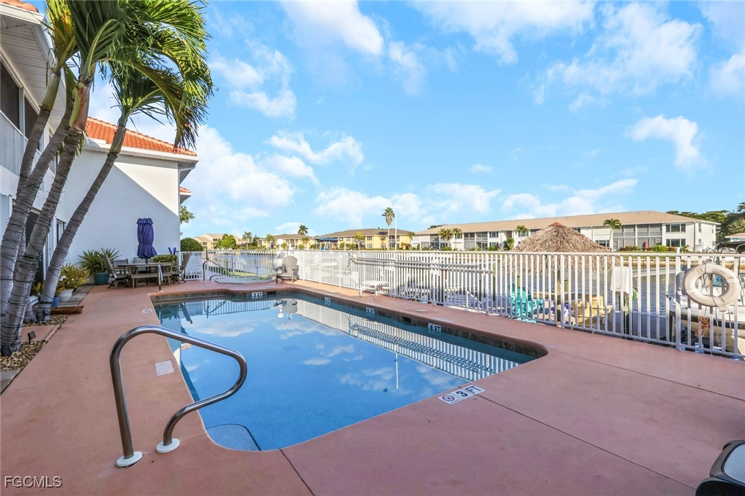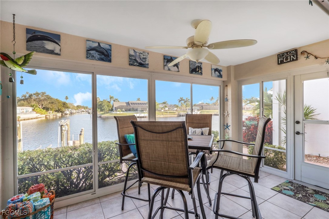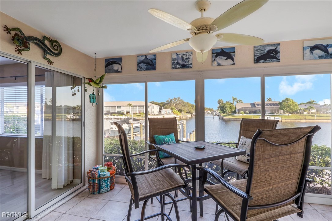 RARE FIND! This beautiful waterfront 3 BEDROOM 2 BATH first floor condo has it all, including your own DEEDED BOAT DOCK with 16,000 LB LIFT! This condo sits on intersecting canals located on the wide Rubicon canal. NEW TILE ROOF 2025. NEW SEAWALL replacement 2019. NEW AC UNIT 2025 and NO FLOOD INSURANCE required. This is indeed a rarely found opportunity in Cape Coral, enjoy the easy Gulf access canal right outside your back door! Only 13 minutes to the Caloosahatchee River (one bridge) for great fishing and boating enjoyment. Great Room style floor plan with beautifully updated kitchen featuring quartz countertops. Crown molding encases the main living area. Master suite features sliders to the lanai, walk-in closet, large bath with dual sinks/vanities. You'll love the lanai w/Eastern exposure & NEWLY INSTALLED LANAI SLIDERS which really expand the living room space and enjoy the sunny & warm Florida breeze. The lanai can be used all year round, either enclosed or opened up for outdoor enjoyment. The complex includes a community pool & spa/hot tub overlooking the canal, BBQ & 2 Tiki Docks / Huts. Low HOA fees in a well managed association with only 14 units.