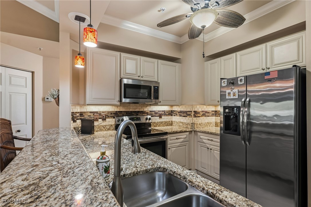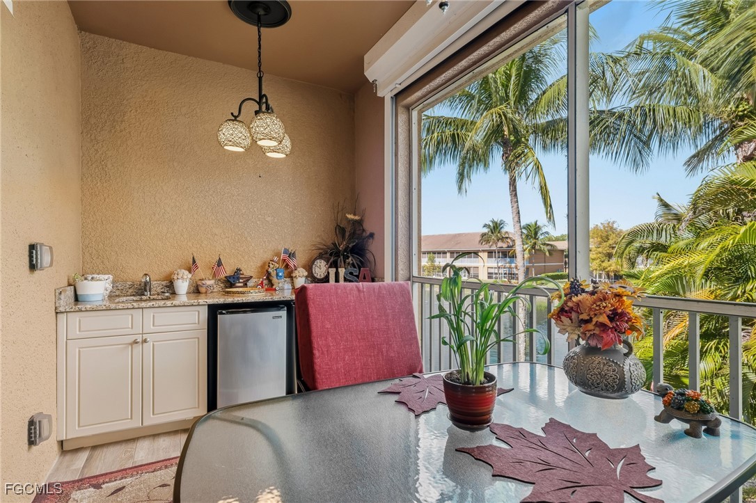 The kitchen and baths include lighting beneath the bathroom cabinets for added convenience. The exterior patio is equipped with electric hurricane shutters that also function as a sunshade, giving you flexible outdoor comfort in any season. The exterior lanai features a sink and minifridge, creating a ready made space for entertaining or enjoying quiet afternoons.