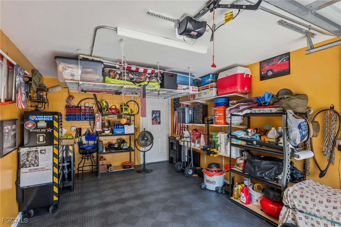 The property includes a whole house surge arrestor in the electric box, a transfer switch for a generator, and five smoke detectors with a ten year lifespan for peace of mind. The single car garage features cushioned mat flooring, making it both comfortable and functional.