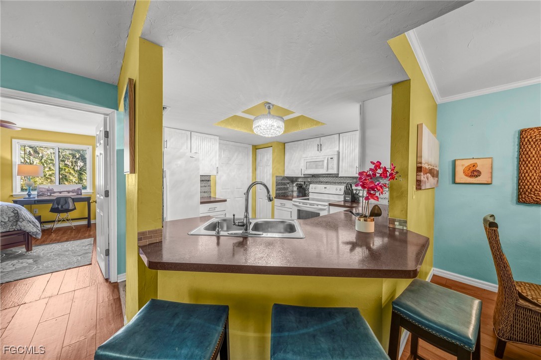 Welcome to this beautiful TURNKEY 2-bedroom, 2-bath FIRST-FLOOR END UNIT condo! This home offers an in-unit washer & dryer, a stylish kitchen with gorgeous backsplash, breakfast bar, and separate dining area. Updates include a fully renovated guest bathroom, brand-new luxury vinyl plank flooring in the kitchen, NEW HVAC installed November 2025 with 1-year labor and 10-year parts warranty, and a NEW Rheem water heater installed November 2024 with 6-year parts warranty. Storage is abundant with walk-in closets in both bedrooms, a spacious entry and linen closet, plus an oversized lanai closet. Relax on the private, lushly landscaped screened lanai with access from both the living room and primary suite. Fountain Lakes offers incredible amenities: 9-hole golf course, pickleball, tennis, community pools, fitness center, clubhouse, bike/jog path, bocce, shuffleboard, BBQ areas, library, playground, and more. Prime location! Just 5 minutes to Coconut Point’s 110+ shops and 20+ dining options, 12 minutes to Miromar Outlets, 20 minutes to RSW Airport, and 20 minutes to the beaches. Come and enjoy the Florida lifestyle!