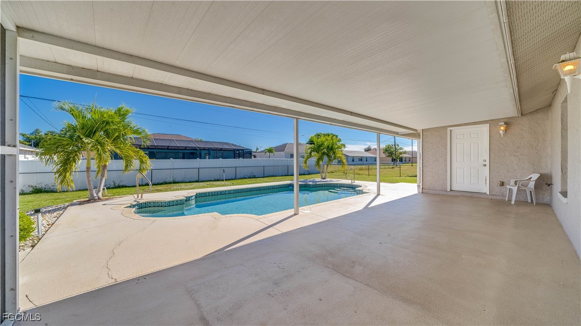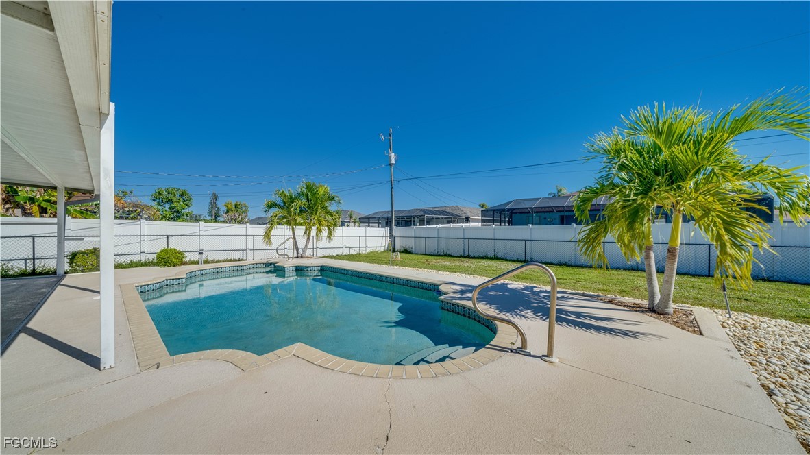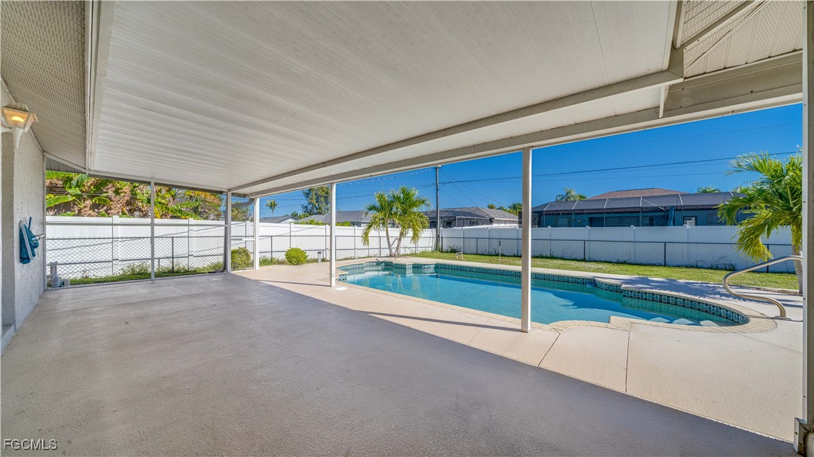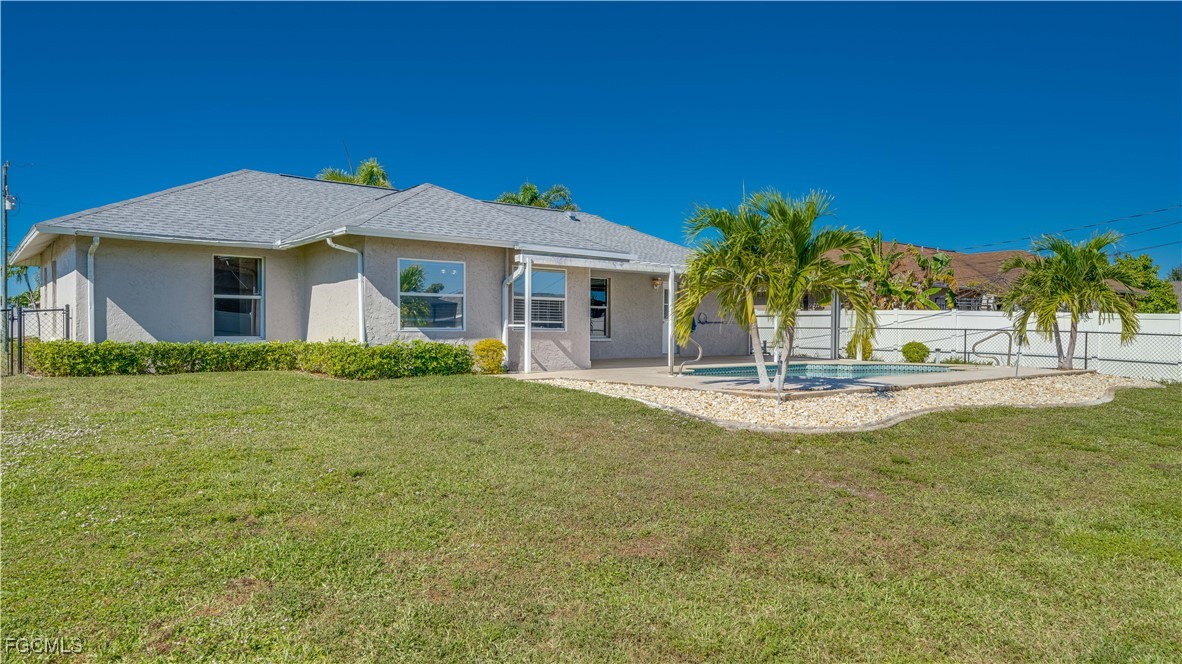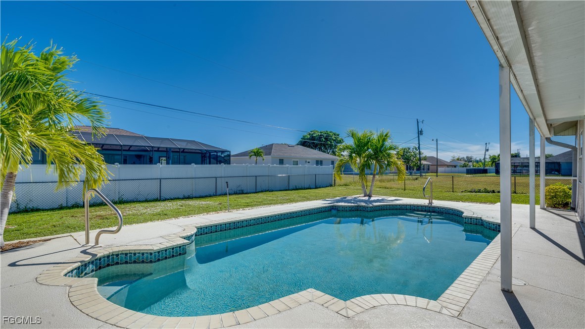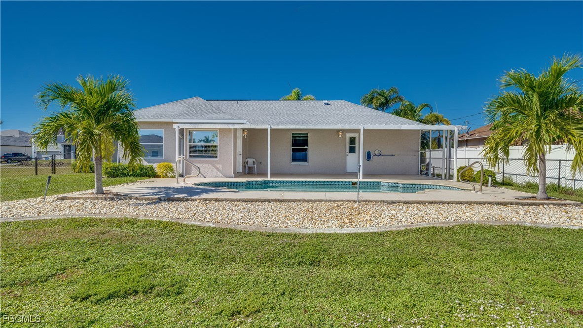 Welcome to this 3 bedroom 2 bath home located in popular SW Cape Coral offering great potential this home featuring tiled floors throughout, a screened front entry, a large, covered lanai and an open swimming pool. The backyard is fully enclosed with a black chain link fence (2023), proving space for pets and outdoor activities.