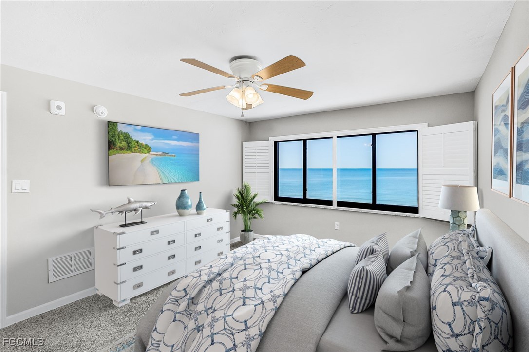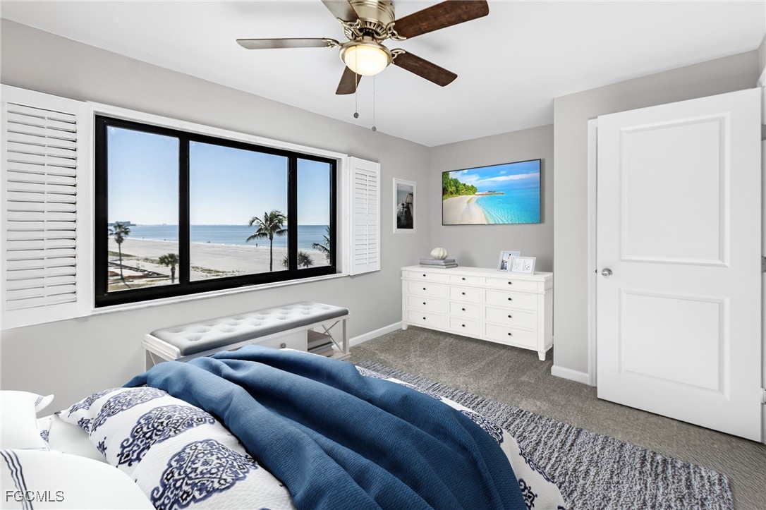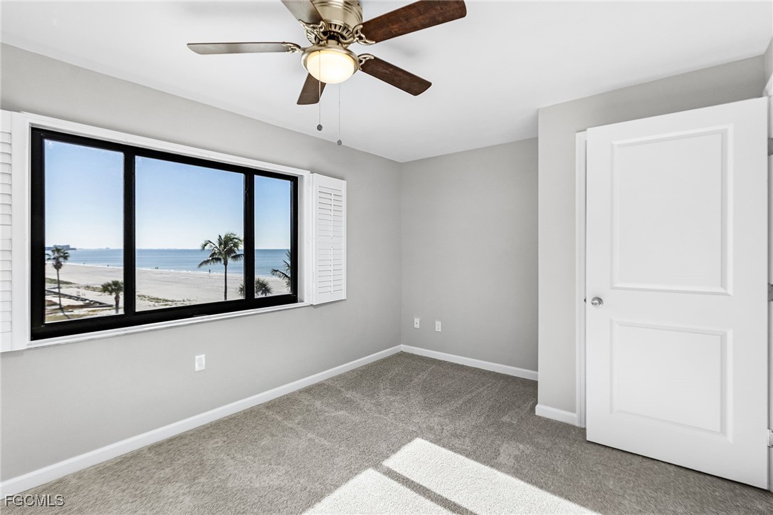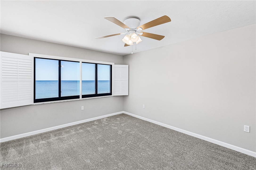 Rare 3 bedroom/2 bathroom FULL GULF FRONT Condo! Cascades Condominium is a great community with only 12 units in the building and has not had a condo for sale in 6 years. This 4th floor, corner unit is fully renovated featuring breathtaking panoramic water views from every window. Beautiful upgrades include new cabinets in the kitchen and baths, granite counter tops, new appliances, tray ceiling in kitchen, plantation shutters throughout, new light fixtures, new AC, new water heater and new flooring throughout. Electric was completely updated 2024. Have peace of mind with new impact resistant windows as well as electric hurricane shutters. Primary bedroom has an en-suite bathroom with designer finishes and walk in custom built closets. The split floorpan is perfect for entertaining guests. Large in unit laundry! Under building covered carport and storage cage included. Enjoy nightly sunsets right from the lanai or step out onto the sugar white sand of Fort Myers Beach. Located Mid Island close to Publix, Junkanoo, Fresh Catch, Snook Bight Marina and Newton Park. Schedule a showing today!