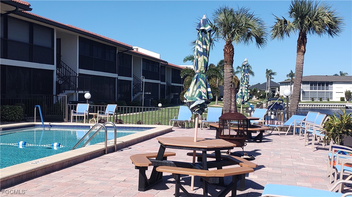 Waterfront living at its finest in this Gulf-access 2-bedroom, 2-bath condo located in the heart of South Cape Coral! This second-floor unit sits high and dry and has never flooded. Enjoy beautiful water views from the oversized lanai, where you can watch dolphins and manatees in the canal. The lanai offers convenient access to the heated pool and boat docks.