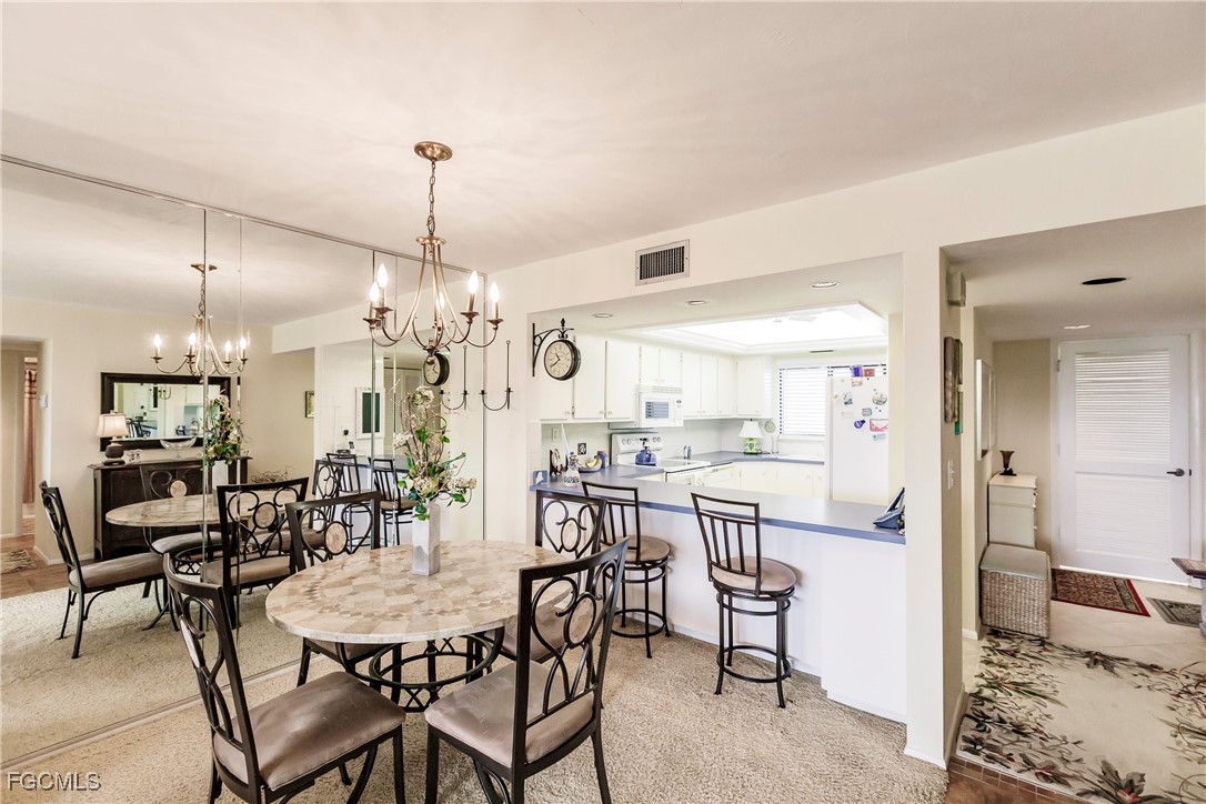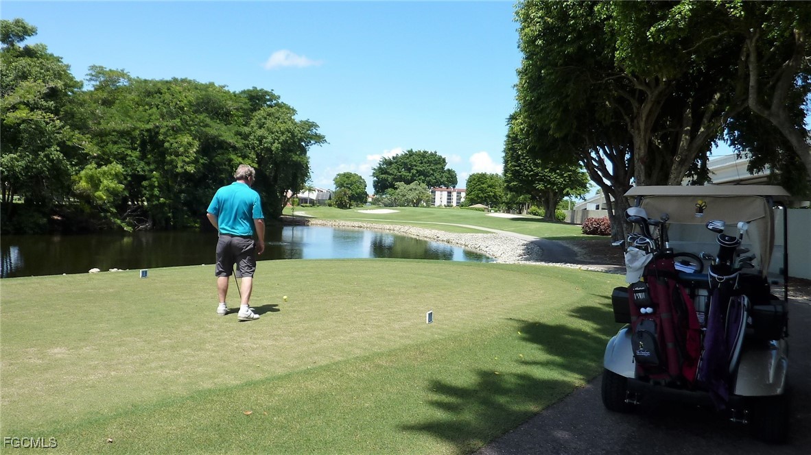 SUPER VALUE in this 3rd floor, 2-bedroom Trawler Village condo, featuring a beautiful southern view of the lake, fountain, and golf course, with wonderful natural light all day long. Well maintained and cared for, it features white resurfaced cabinets and a stylish tile backsplash, new sink and tray ceiling in the kitchen, updated floor tile & carpet, plus upgrades in both bathrooms. Newer electrical panel, laundry sink and AC, as well as impact-rated sliding doors on the lanai that extend the living space, plus newer windows in primary and kitchen, this property is turnkey and move-in ready. Newer patio furniture, covered carport AND 2007 Jeep Cherokee included! Located in The Landings Yacht Golf & Tennis Club, just minutes from Ft Myers Beach, Sanibel, shopping, theater, FLSW Univ, RSW airport, medical facilities, and the downtown river district, this condo offers outstanding value with bundled amenities of golf, tennis, pickleball, bocce, marina, dining, entertainment, and a vibrant country club lifestyle for your next chapter. See for yourself why the Landings is Southwest Florida's best kept secret. Don’t miss out on this great opportunity!