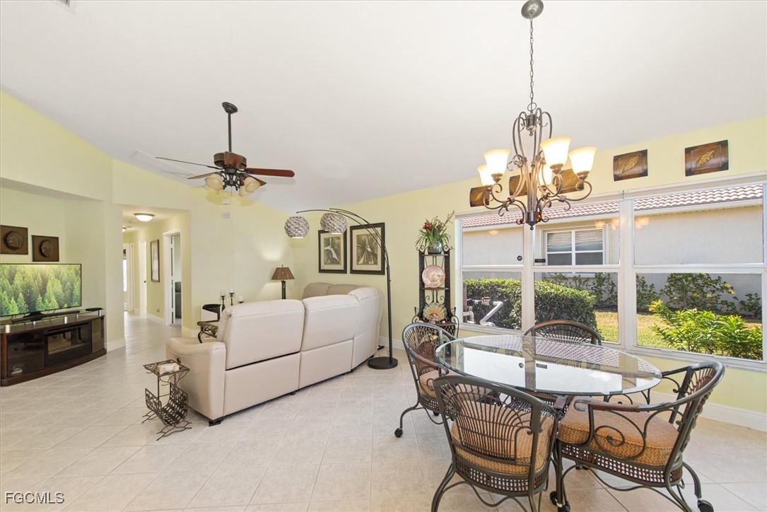 Inside, the open great room is designed for effortless living and entertaining, naturally flowing to the lanai to embrace Florida’s beloved indoor-outdoor lifestyle. The chef-inspired kitchen features upgraded counters, a breakfast nook, and a raised bar ideal for casual dining and conversation. The spacious primary suite boasts serene lake views and a spa-like bath, while the guest bedroom, den, and full bath are privately positioned for ultimate comfort and flexibility.