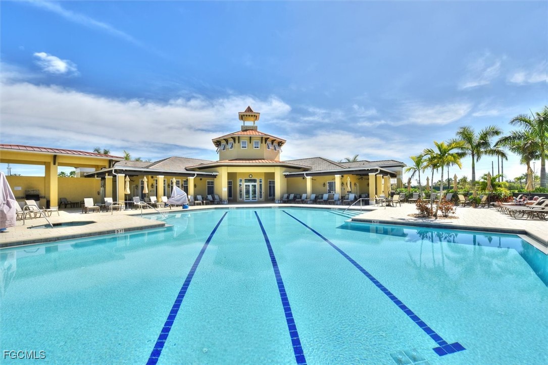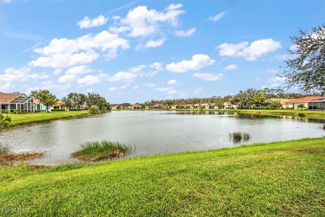 Set along a shimmering lake, this beautifully upgraded 2-bedroom plus den, 2-bath home spans 1,587 sq. ft. of thoughtfully designed space. A charming private entry courtyard welcomes you inside, while an expansive screened and extended lanai creates a true outdoor sanctuary—perfect for savoring tranquil water views and unforgettable sunsets from your private 16-person in-ground hot tub.