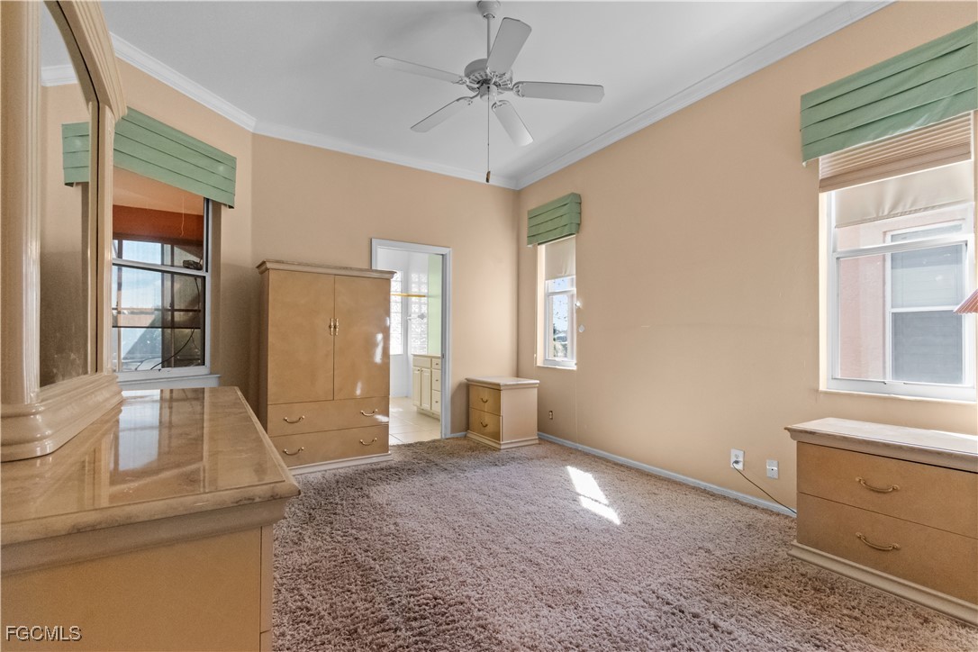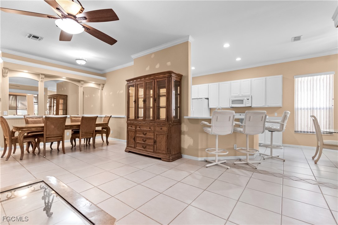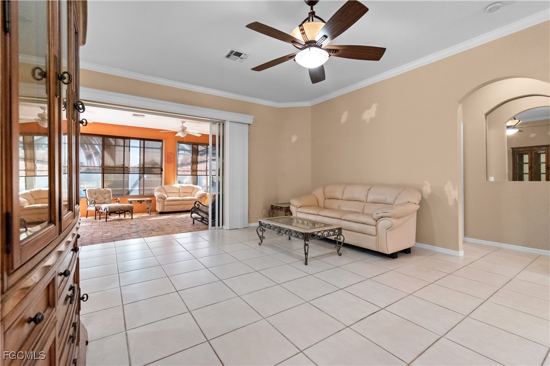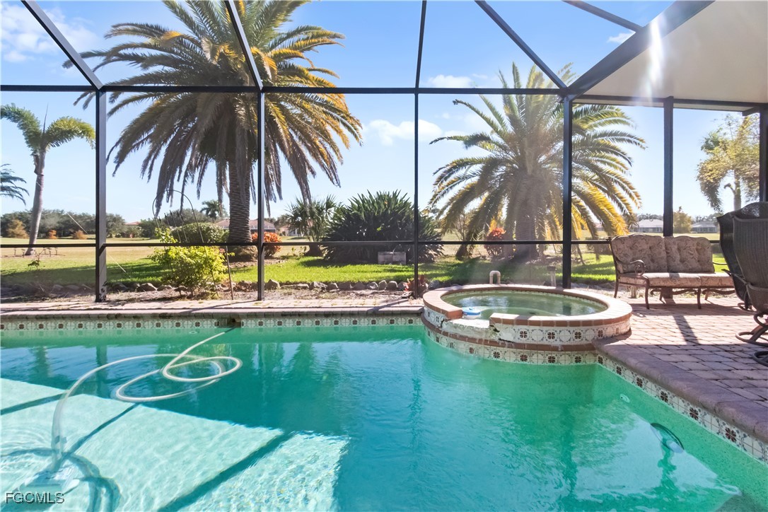 A great opportunity to own a pool home with peaceful golf course views in the gated golf community of Westminster. The home has terrific bones, inviting spaces, and room for someone to add their own cosmetic touches and make it shine. A paver driveway and screened vestibule lead the way inside. You’ll find a comfortable den, crown molding, an eat-in kitchen with a pantry and bay window, and a laundry room outfitted with an extra closet and cabinets for easy organization. The primary ensuite is well-designed with a walk-in closet, walk-in shower, double sinks, a separate water closet, and a dedicated linen closet. Pocket sliders open to a spacious Florida room under air, surrounded by Vinyl-tech sliders and windows, perfect for relaxing or extending your entertaining space. Outside, the pool and spa area offers a shaded lanai, a newer screened enclosure, and a tropical backdrop with beautiful canary date palms and sweeping golf course views. A newer tile roof adds value and peace of mind. Westminster itself is beautifully maintained, featuring eleven lakes wrapped around 50 acres of preserves. The community’s amenities include a clubhouse with a restaurant, community center, billiards room, fitness center, tennis and pickleball courts, bocce ball, basketball, a playground, pool with spa, and a picnic pavilion, all with low HOA fees and pay-as-you-play golf. The social calendar is just as impressive, offering bridge, poker, rummikub, dominoes, euchre, knitting, Bible study, book club, bingo, water aerobics, mah-jongg, and a full lineup of community events including food trucks, holiday celebrations, potlucks, and gatherings for every age. And the best part, it’s not in a flood zone and no CDD fees! Whether you’re looking for full-time Florida living or a seasonal escape, with a little TLC this home puts you right where you want to be.