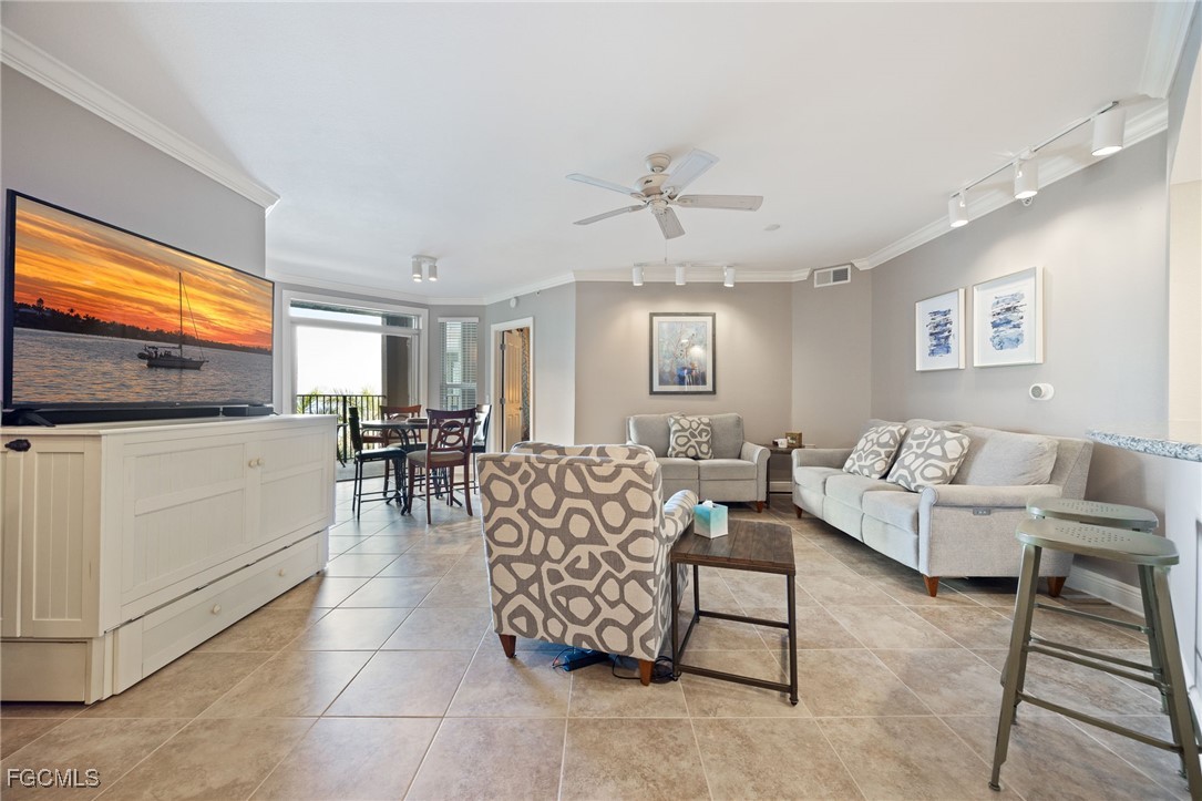 The interior features a spacious great-room design with an open concept layout, crown molding, tile flooring, granite countertops, and upgraded stainless-steel kitchen appliances. The property is offered turnkey furnished with tasteful selections throughout, creating an effortless home-away-from-home experience.