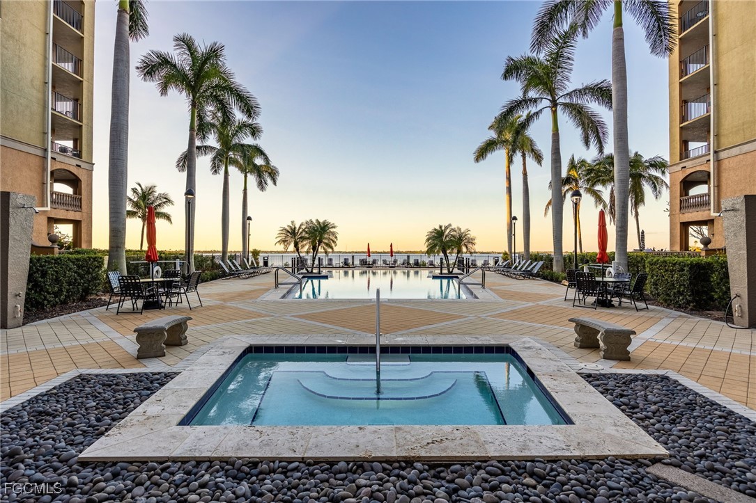 Alta Mar is known for its scenic riverfront location along the Downtown Fort Myers River District. The community provides a heated pool, spa, fitness center, library/business lounge, kayak launch, and lush tropical landscaping with direct riverfront seating and views. Its setting places residents near the seasonal Downtown events, riverfront concerts, art walks, farmers markets, dining, shopping, and the historic district.
