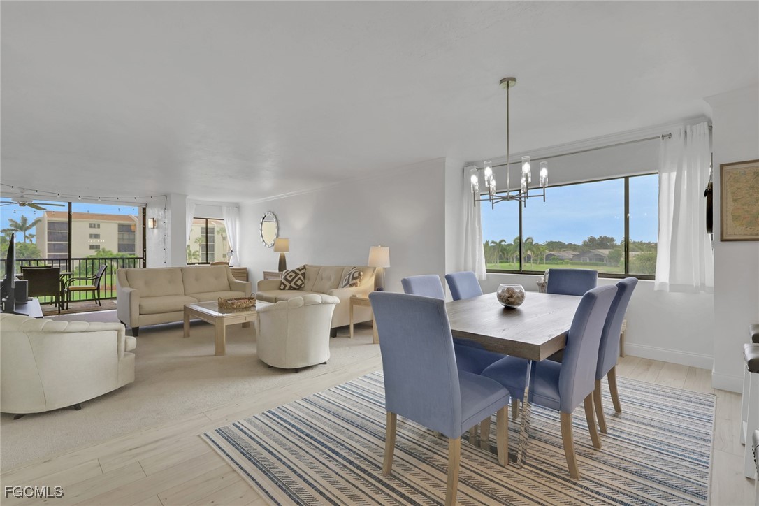 Welcome to a sanctuary where elegant upgrades meets serenity. This sunlit 2-bedroom, 2-bath corner condo is a jewel box of modern comfort, lovingly enhanced chef’s kitchen offering quartz countertops, Stainless steel appliances, including hood and sink that gleams with contemporary and latest finishes. Recent LVP flooring installed to tie in warmth and convenience. Nice luxury and renovated/ updated guest, primary baths bring this condo into current market standards. The minute you walk in the door you are captivated by the views of 3 tropical fairways and lakes. The under the building parking also an added bonus. Enjoy views of community pool from kitchen window another bonus. The community is one of the most prestigious gated communities in SWFL where waterfront is a premium and boaters dream. 18 hole challenging executive golf course and 13 har tru tennis courts for those enthisasts, 8 pickle ball courts, 3 bocce cts . Choose from 2 amazing restaurants for hours of watching sports and enjoying the 19 th hole, or watching the sun go down into the gulf on the outdoor patios
