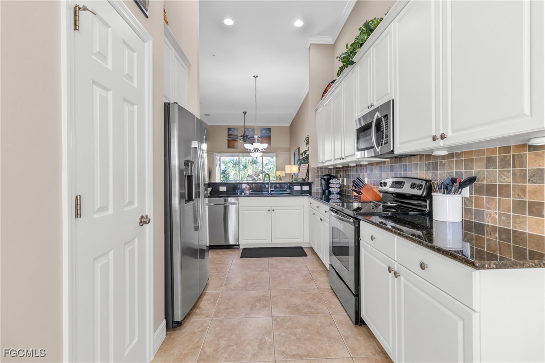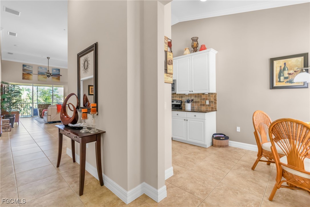 It's not often you get to step into a home that's styled and maintained to perfection. This beautifully appointed 2-bedroom PLUS DEN, 2-bath condo comes TURNKEY FURNISHED and truly is PICTURE PERFECT—every detail is ready for you to move right in and enjoy from day one. Located on the second floor, the residence offers SOARING 9-14FT CEILINGS, expansive 20" TILE FLOORING, and an elegant blend of upgrades including, GRANITE COUNTERS, 5" BASEBOARD, CROWN MOLDNG, STAINLESS STEEL APPLIANCES, and UNDERMOUNT SINKS throughout. The kitchen features a bright BREAKFAST NOOK WRAPPED IN WINDOWS—an inviting spot for morning coffee. The thoughtful split layout creates ideal privacy. A POCKET DOOR turns the guest area into its own comfortable suite, while the DEN, also with pocket doors, includes a sleeper sofa for easy overflow accommodations. The spacious primary suite offers TWO WALK-IN CLOSETS and a well-appointed bath with a DOUBLE VANITY and LARGE TILED WALK-IN SHOWER. The great room is warm and airy, with generous living and dining space and sliders that open to a serene lanai overlooking the PEACEFUL NATURAL PRESERVE—a quiet backdrop you’ll appreciate every day. Practical features include TWO TANDEM PARKING SPACES, ONE IS COVERED and an EXTERIOR STORAGE CLOSET perfect for beach gear and sporting equipment. The building received a NEW ROOF IN 2024, and the community has invested heavily in improvements: both pools resurfaced, new grills, updated gym equipment, fresh pool furniture, repaved roads, and more. Just a short two-minute stroll from your door, brings you to the RESORT STYLE POOL, complete with clubhouse, fitness room, community spaces, business center, and a cozy lending library. A second, quieter pool sits at the back of the neighborhood. This WELL MANAGED, GATED COMMUNITY IS IDEALLY LOCATED—only 15 minutes to Fort Myers Beach, 20 minutes to Sanibel, close to excellent shopping and dining, and about 30 minutes to the airport or downtown. Owners may have up to TWO PETS with approval. Opportunities like this don’t come often—this exceptional home is ready to impress. Don’t miss it!