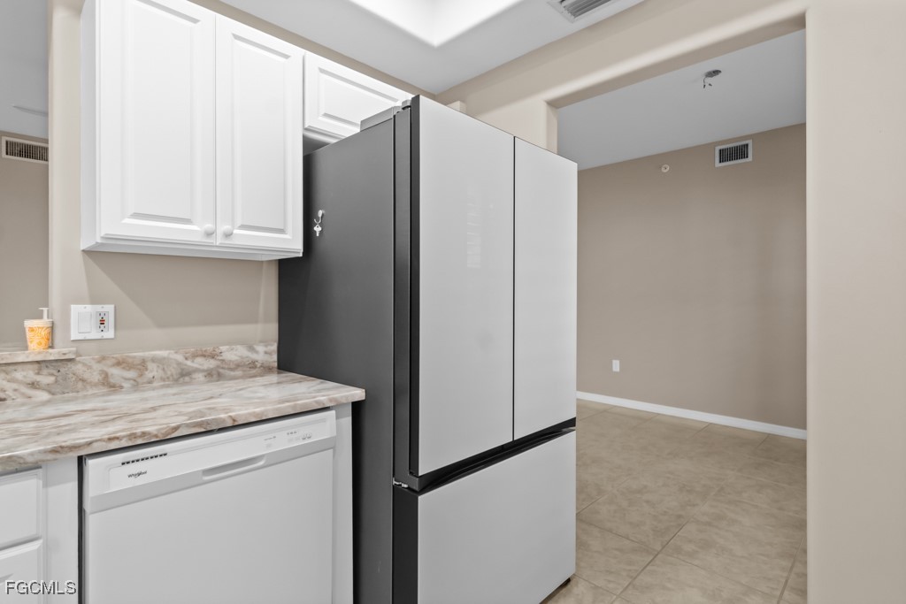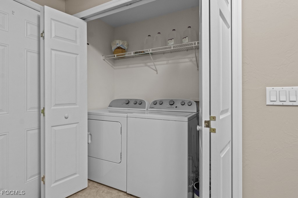 Enjoy stunning water views from the main living area and the spacious primary suite, which features a large walk-in closet and an en-suite bathroom with dual sinks and granite countertops. The kitchen is equipped with updated appliances and high-end granite surfaces, ideal for everyday cooking or entertaining. Additional features include tile flooring throughout the main living areas, carpeted bedrooms, new high end Samsung refrigerator, Plantation shutters and upgraded window coverings, glass shower enclosure, updated lighting, a full-size washer and dryer, and much more!