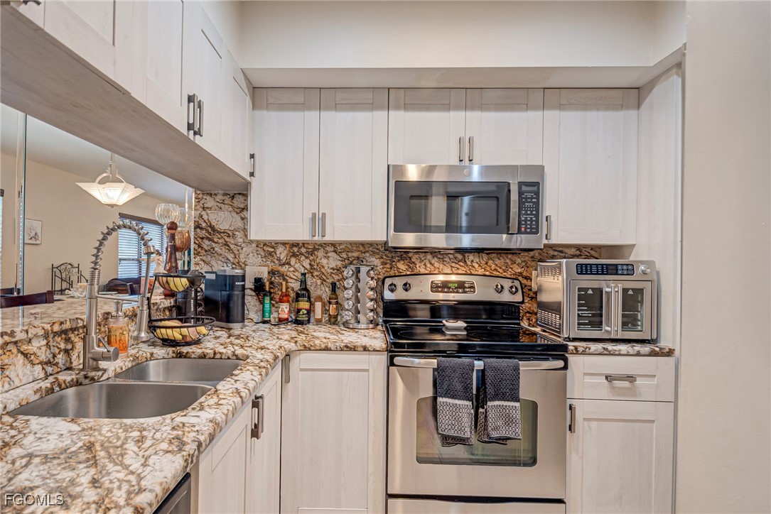 Welcome to this beautifully updated 2-bed, 2-bath Brookshire Village condo—located in one of Fort Myers’ most desirable and amenity-rich communities! This spacious second-floor residence offers a bright open layout with newer floors, neutral paint, and an inviting living/dining area perfect for entertaining. The updated kitchen features white shaker cabinetry, granite countertops, stainless-steel appliances, and a custom tile backsplash.