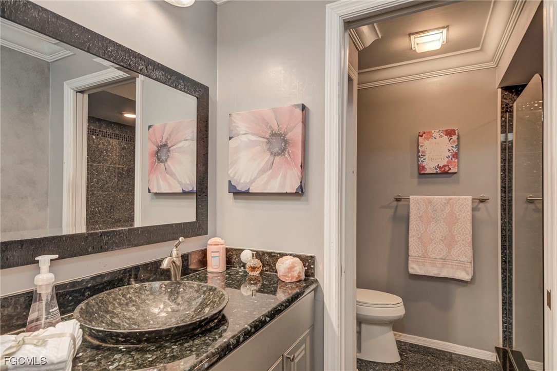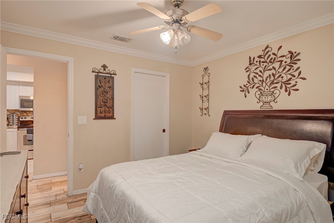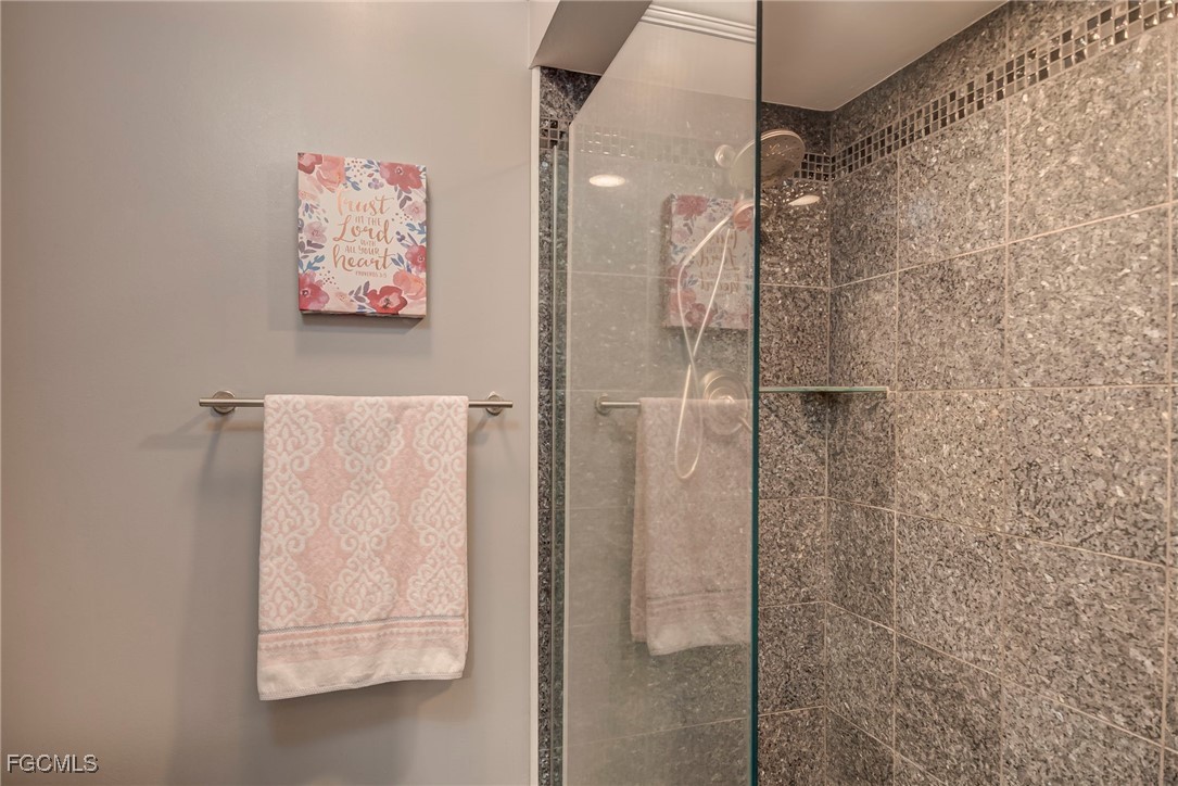 The primary suite includes a large walk-in closet, en-suite bath with an upgraded vanity, modern fixtures, and a beautifully tiled shower, marble floor. The guest bedroom and second bath are thoughtfully separated for privacy. Enjoy your morning coffee or evening breeze on the private screened-in lanai, surrounded by lush tropical landscaping.