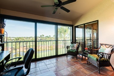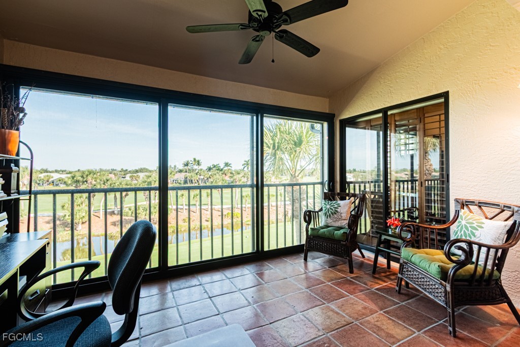 This beautiful 3rd floor condo has cathedral ceilings and an open floor plan. The lanai is enclosed with hurricane proof sliders to give you extra space. From here you'll enjoy watching the golfers on the 16th Fairway with a birds eye view. This condo has the split bedroom floor plan (2 bedrooms--2 full baths).