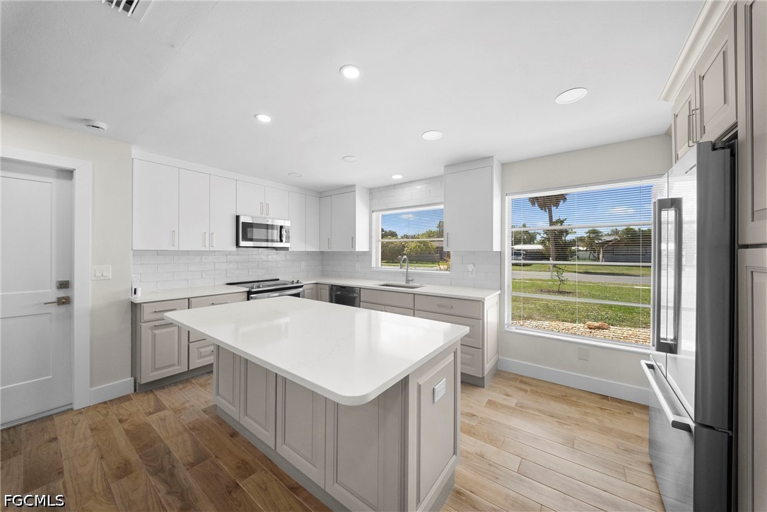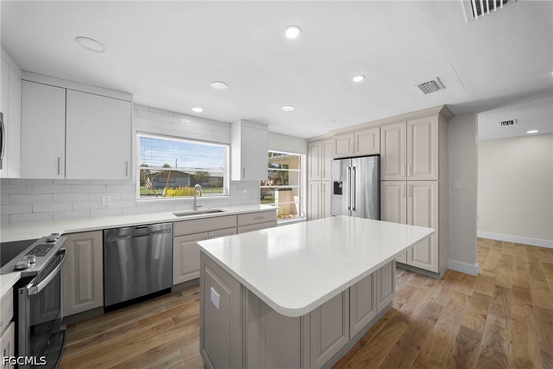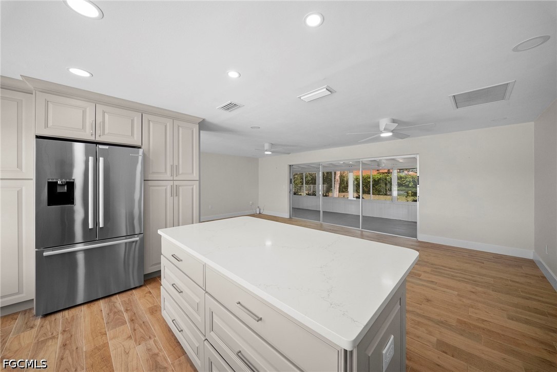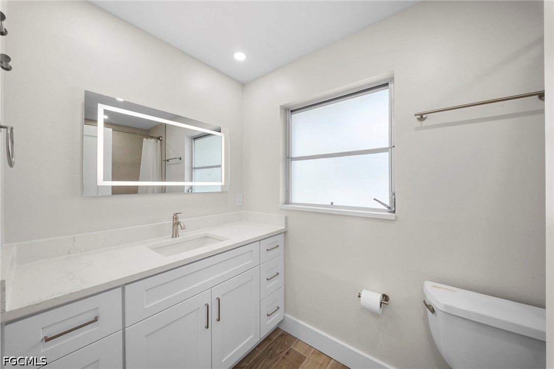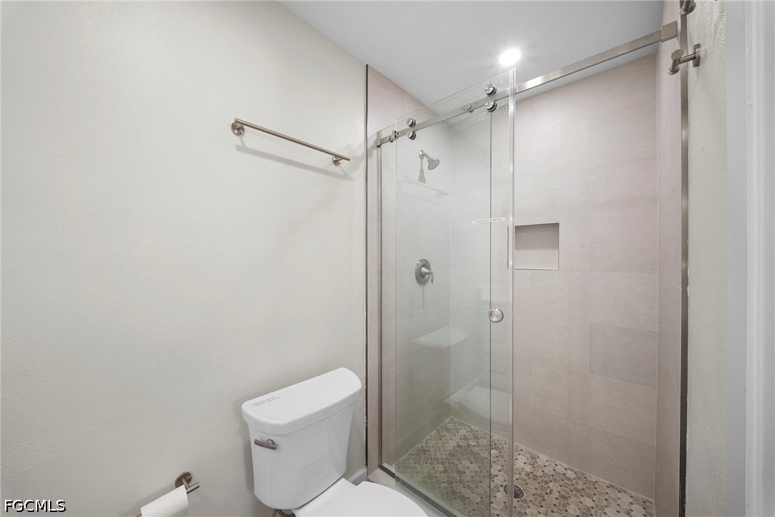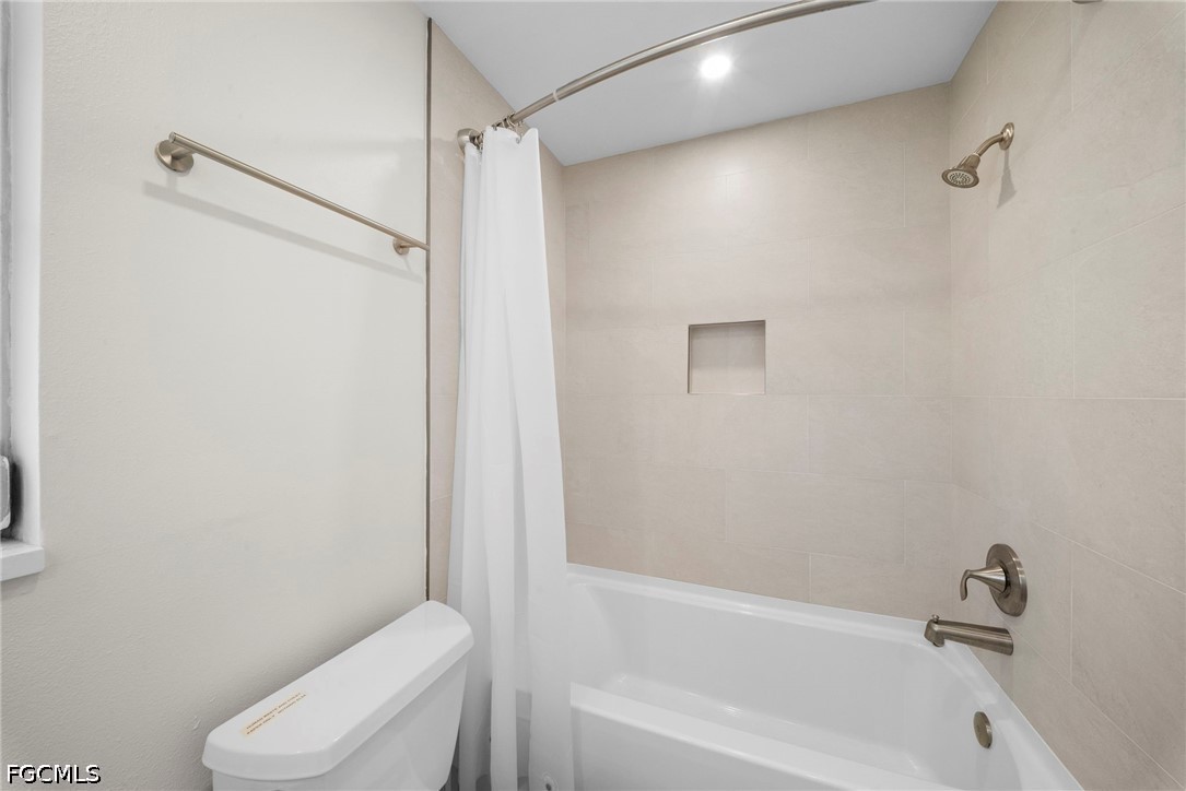 This fully renovated 2-bedroom, 2-bath home in Fort Myers, FL offers an open-concept kitchen with granite countertops and stainless steel appliances flowing into a combined living and dining area. Tile floors extend throughout the main living spaces, while a walk-in closet adds storage convenience in the bedroom.