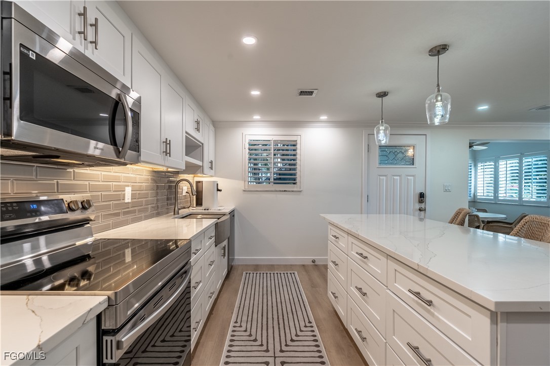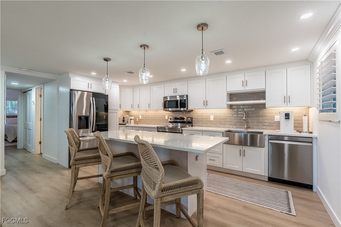 Step inside to discover a bright, open-concept floor plan featuring brand-new luxury finishes throughout. The gourmet kitchen showcases custom cabinetry, quartz countertops, stainless-steel appliances, and a spacious island ideal for entertaining. The living and dining spaces flow seamlessly, enhanced by recessed lighting, wide-plank flooring, and abundant natural light.
