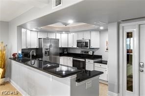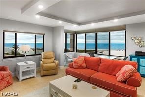 Enjoy beachfront living in this beautifully remodeled 2-bedroom, 2-bathroom condo on Fort Myers Beach. The entry to this condo is unique and versatile allowing for ample storage, a sitting area or even an office. This stunning open-concept home features a modern kitchen with trey ceilings, granite countertops and stainless steel appliances, perfect for entertaining. The split floor plan offers privacy and comfort, with a spacious guest room and a guest bath complete with a tub and shower combo. The master suite boasts tray ceilings, sliding doors for added privacy, and an ensuite bath with a walk-in shower. The living room has coffered ceiling design with added lighting along abundant natural light fills the space, showcasing breathtaking views of the beach and the Gulf of Mexico. Hurricane windows throughout provide added peace of mind. Don't miss the opportunity to own this beachfront gem with spectacular views and stylish updates! This unit also has a brand new air conditioner which was installed March 2024.