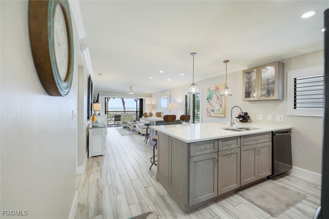 Welcome to 1403 Beach Cottage! A coastal inspired and completely renovated, turnkey 2 bedroom / 2 bath condominium with breathtaking beach views and stunning sunsets. Embrace the extraordinary at Beach Cottages located inside the reimaged South Seas Resort. The association has recently completed a transformation of the common areas including resurfacing of the pool and new patio furniture, expansion of the pool deck and addition of lush tropical landscaping, new roofs, installation of exterior Hardie siding, replacement of all staircases and railings, updating the tennis court and adding pickle ball, and all new lanais. You'll love the improvements to the interior including the 2 new bathrooms, smartly designed custom kitchen with quartz countertops and GE Profile appliances, functional laundry room with an owner's closet, new hot water heater, current plumbing system, wind resistant impact windows and bi-fold sliding glass doors, cozy plantation shutters, LED recessed lighting, outside shower and under the building (humidity controlled) personal storage shed. The condo is a short walk to the Village of Captiva with themed restaurants and cute shops. Excellent rental income history. Unlimited owner usage in South Seas rental management agreement. Life is Better at the Beach! Please call for your private showing.
